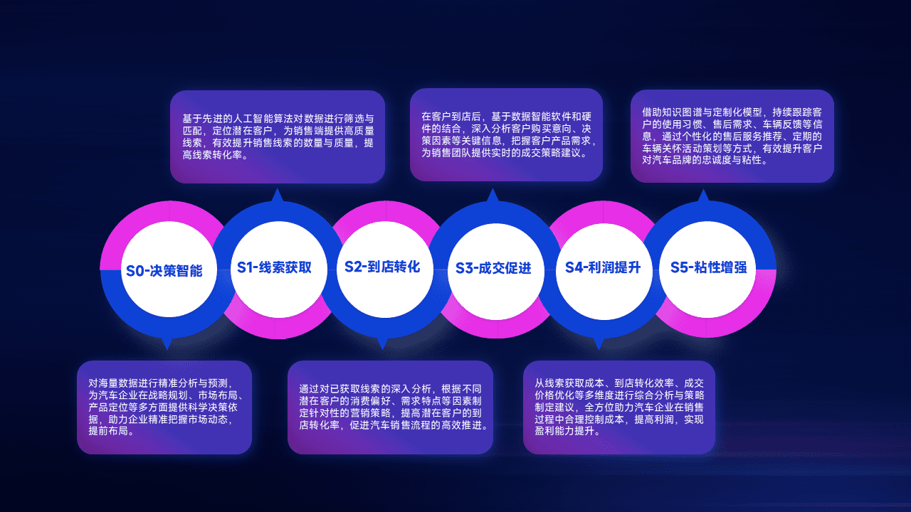 通过拓宽潜在客户来源、、优化线索分配并提高到店转化率,,,以增强销售效率。。。。同时,,,,利用线索数据不断优化分析模型,,,有效提升转化率,,,扩大营销影响力。。。